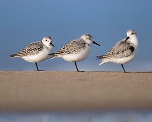 A trio of sanderlings wintering on Delaware's Atlantic coast